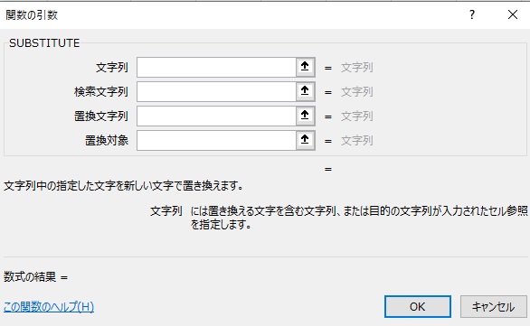 SUBSTITUTE関数は、「どのセル(列)」にある「どんな文字列」を「どんな文字列に変更」するか?を指示する関数です。